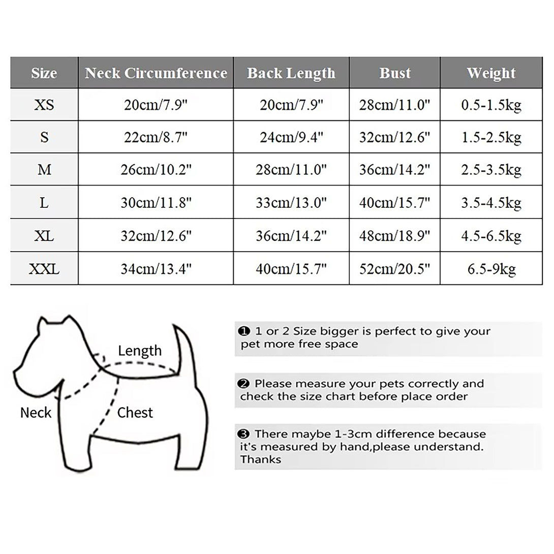 Perfect Fit: Available in various sizes to ensure the perfect fit for small to medium dogs and cats. Refer to our size chart for accurate measurements.